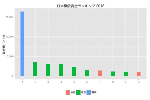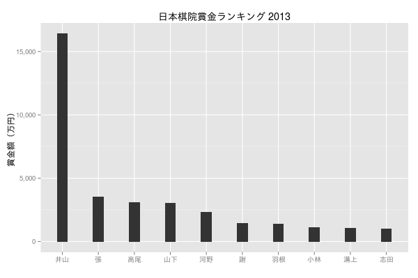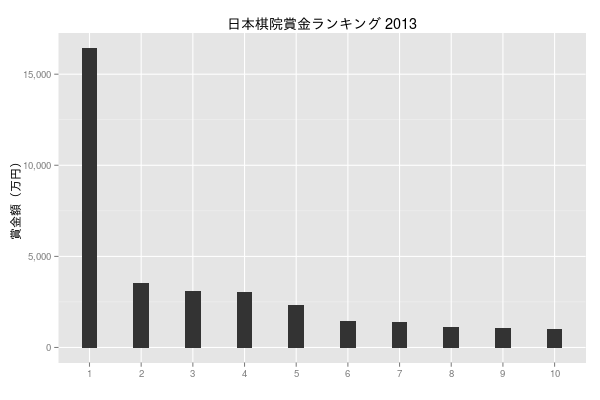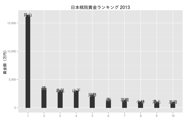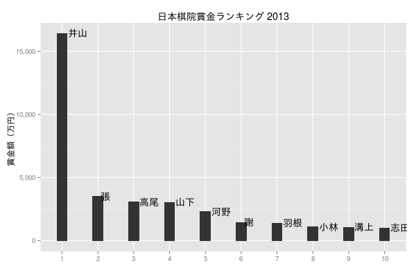 ggtitle('日本棋院賞金ランキング 2013') +